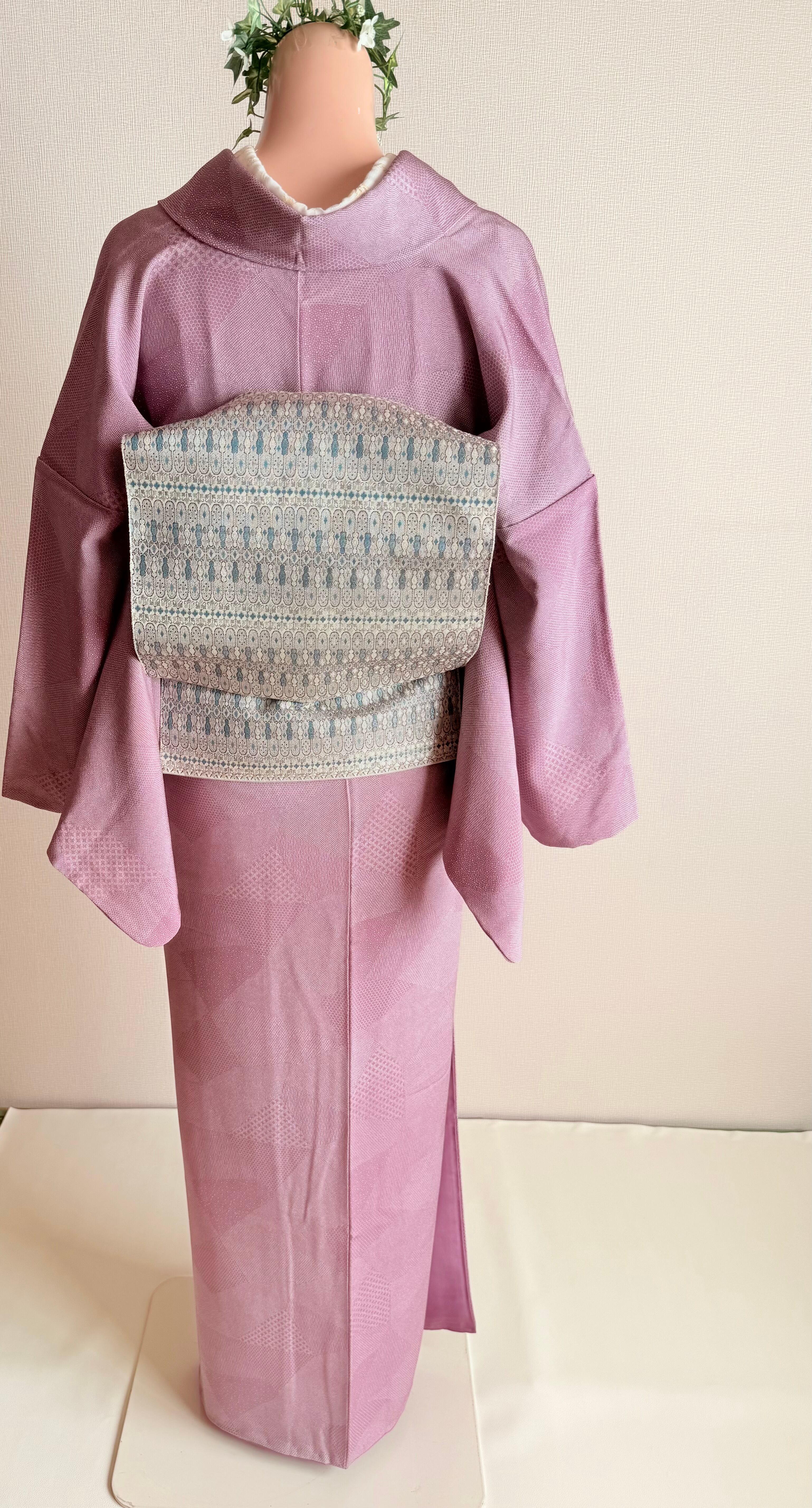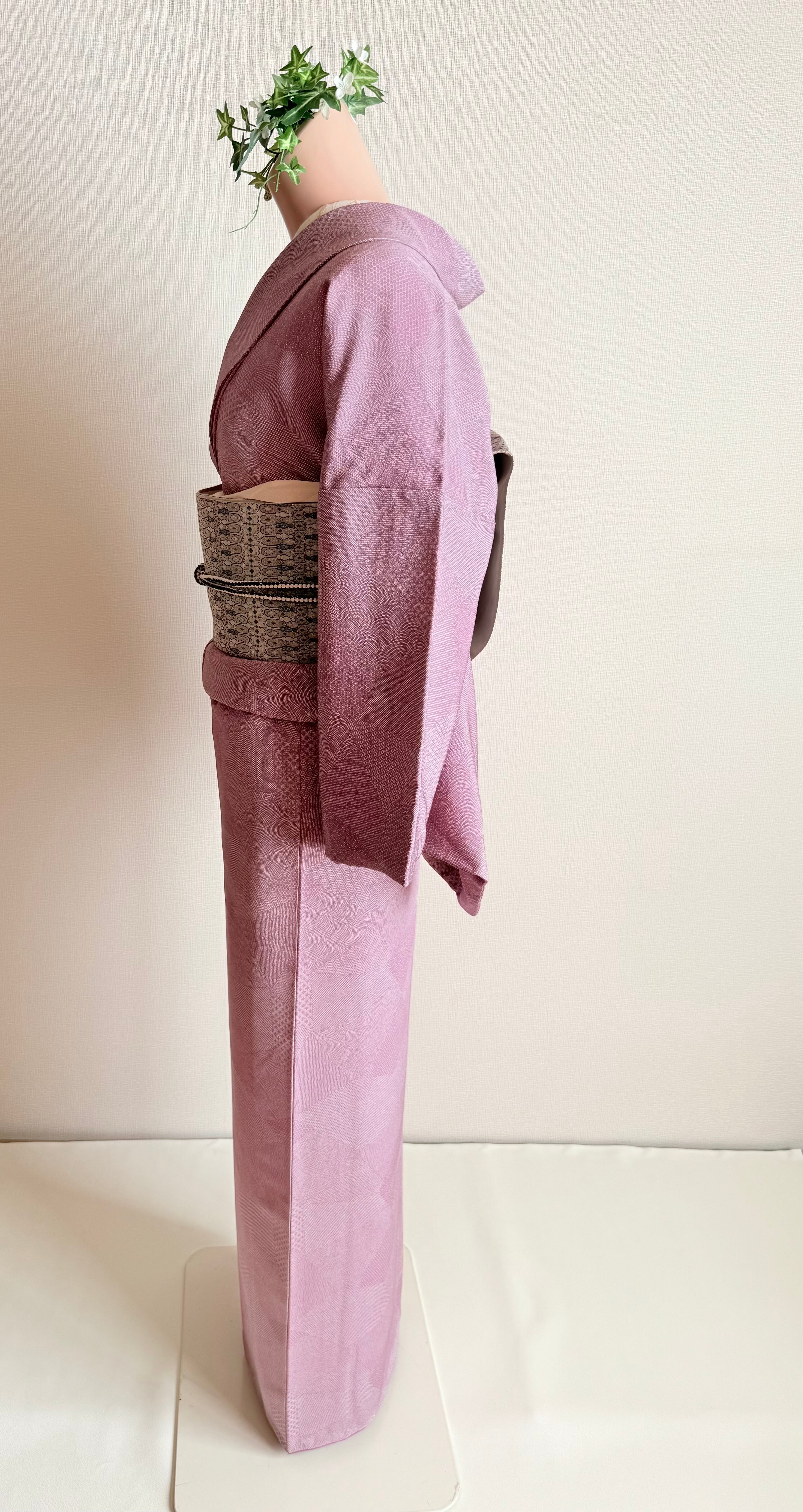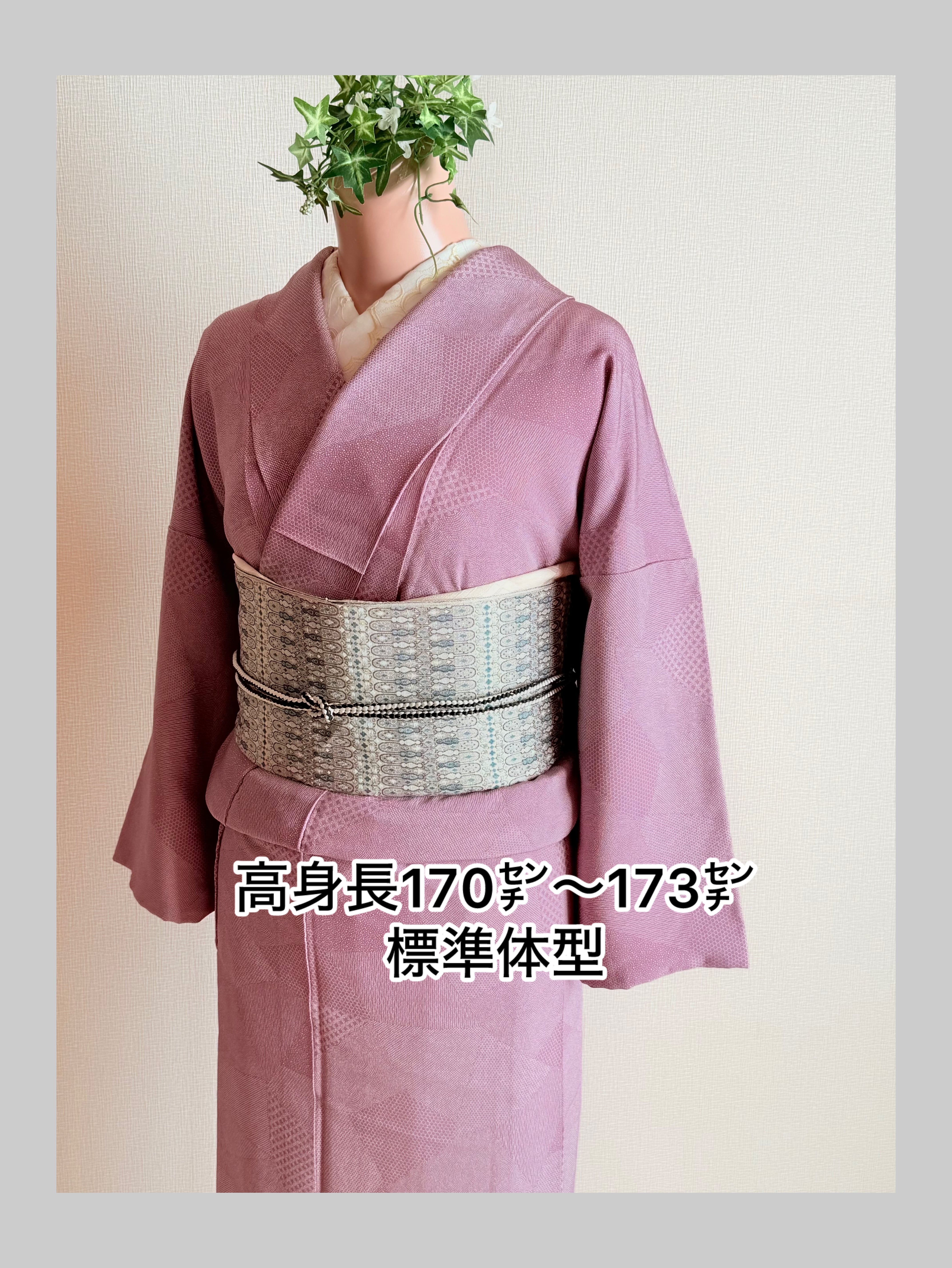 高身長で横幅サイズは標準体型の方向き。藤色の色無地風寄せ小紋のセパレート着物です。