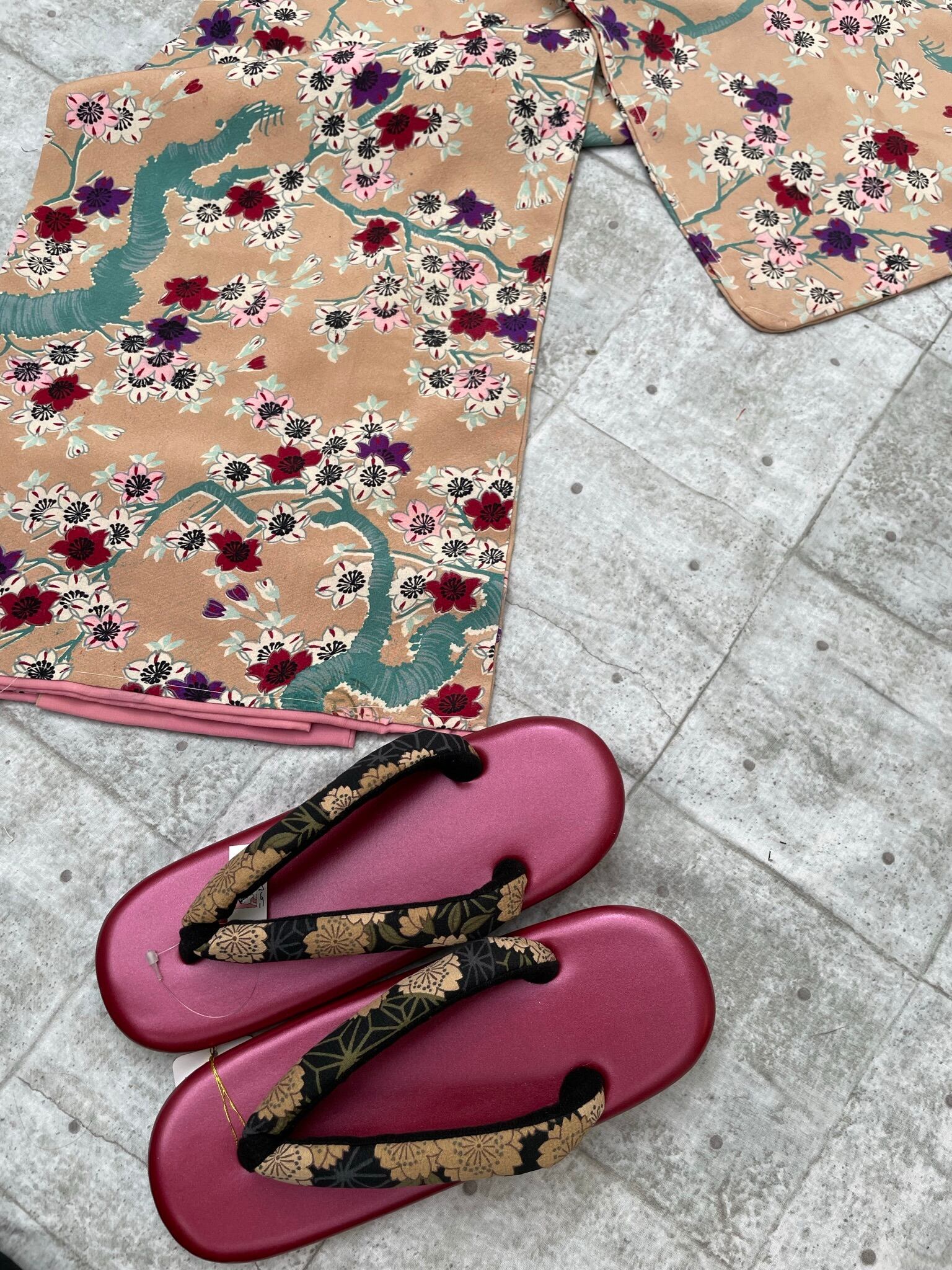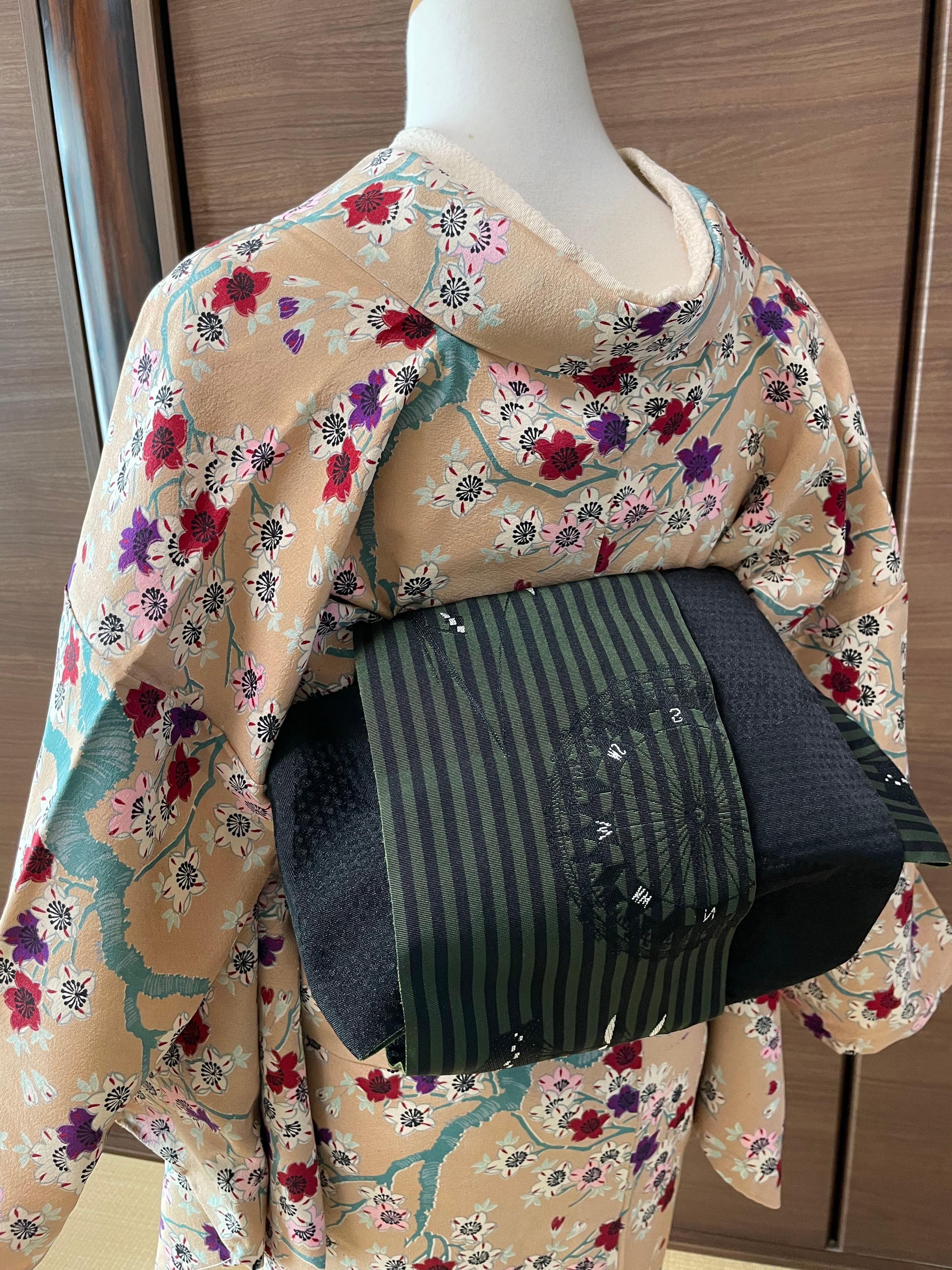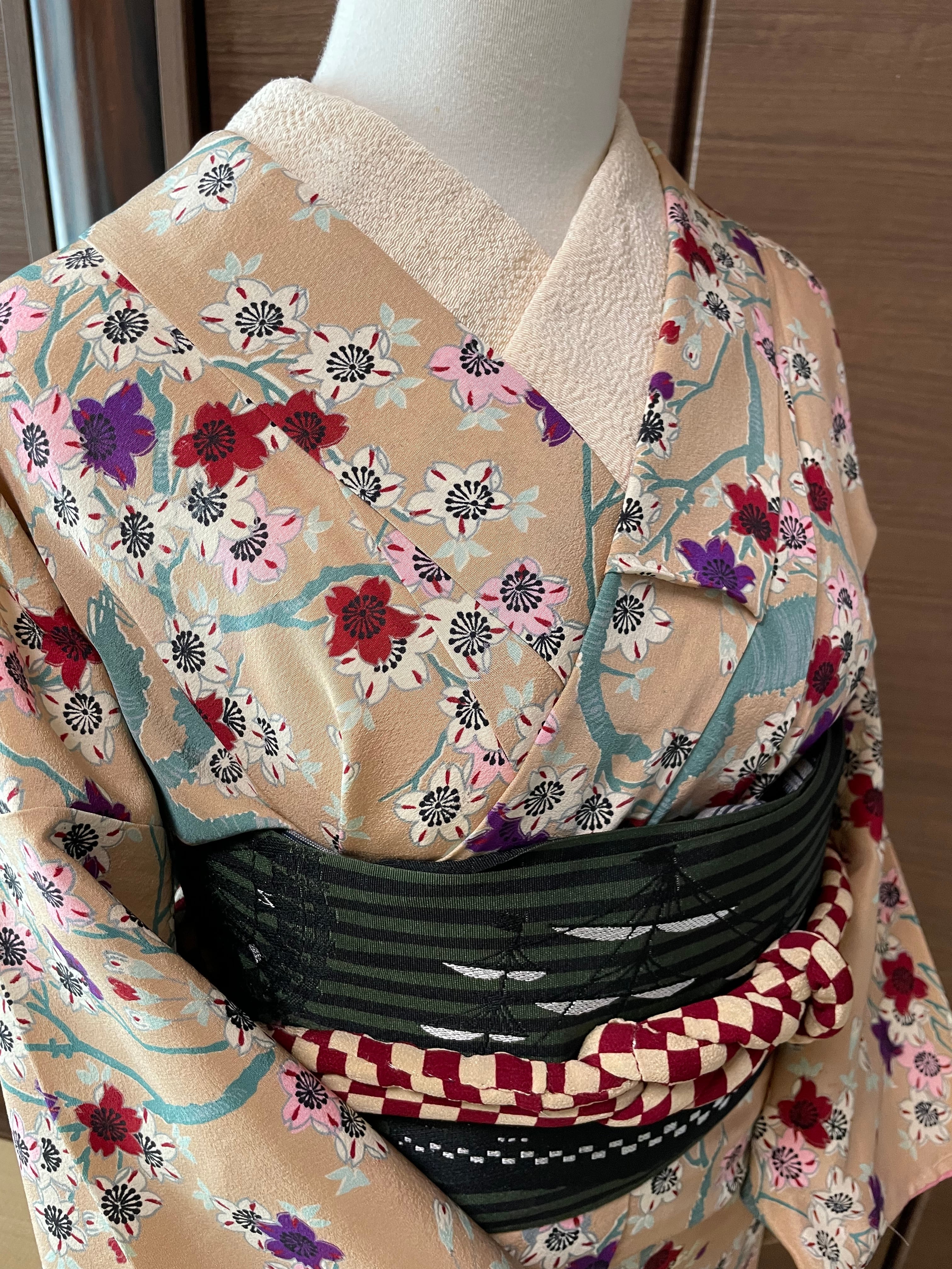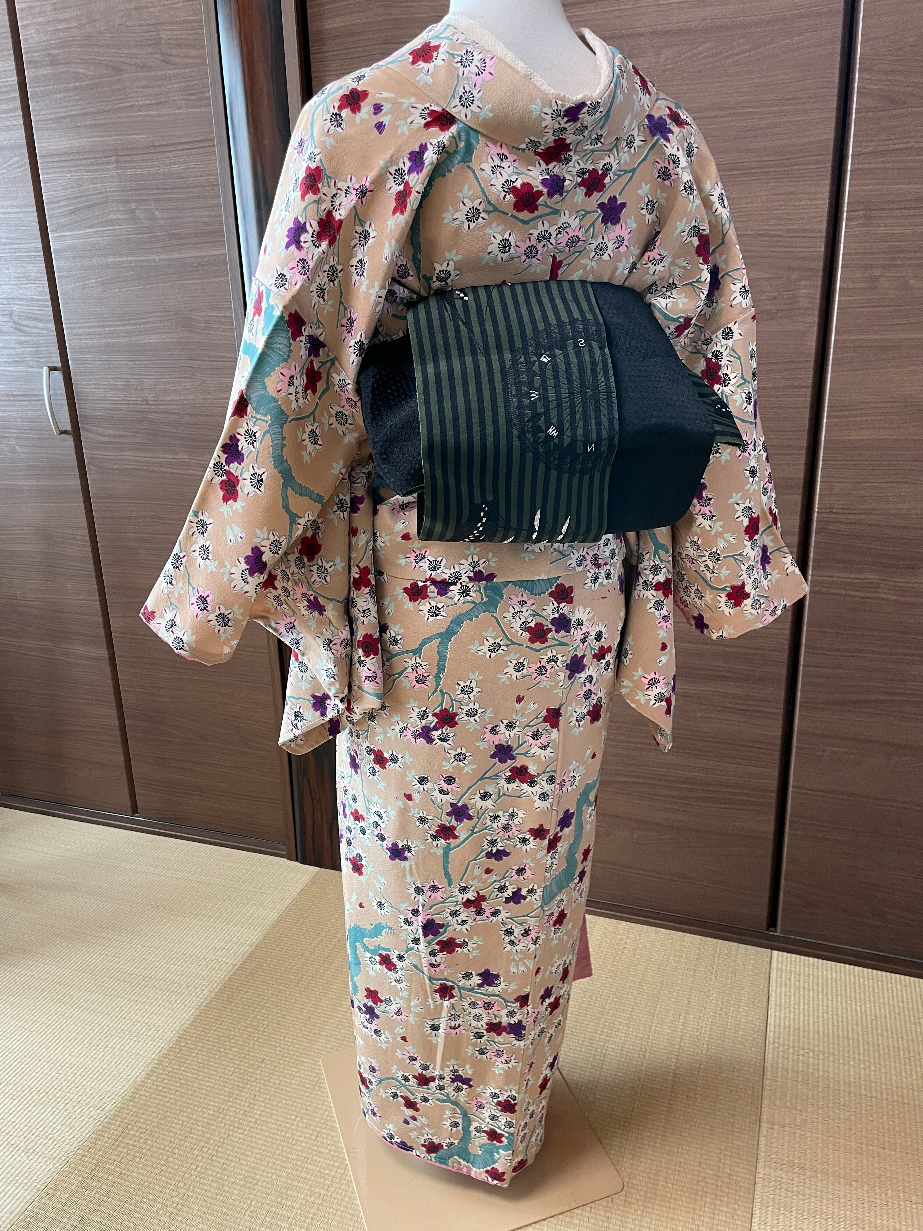 ✳️こちらはレトロな雰囲気の小紋です。全体に桜の柄付けがされていて、なんとも風情のあるお洒落着物です。