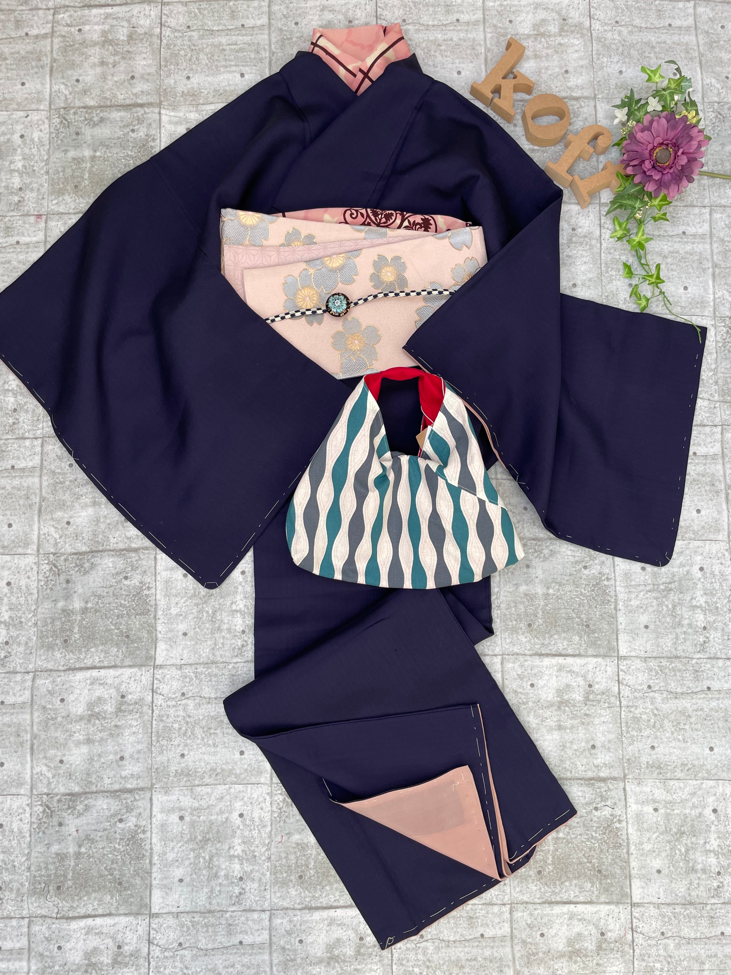濃い紫 色無地 セパレート着物