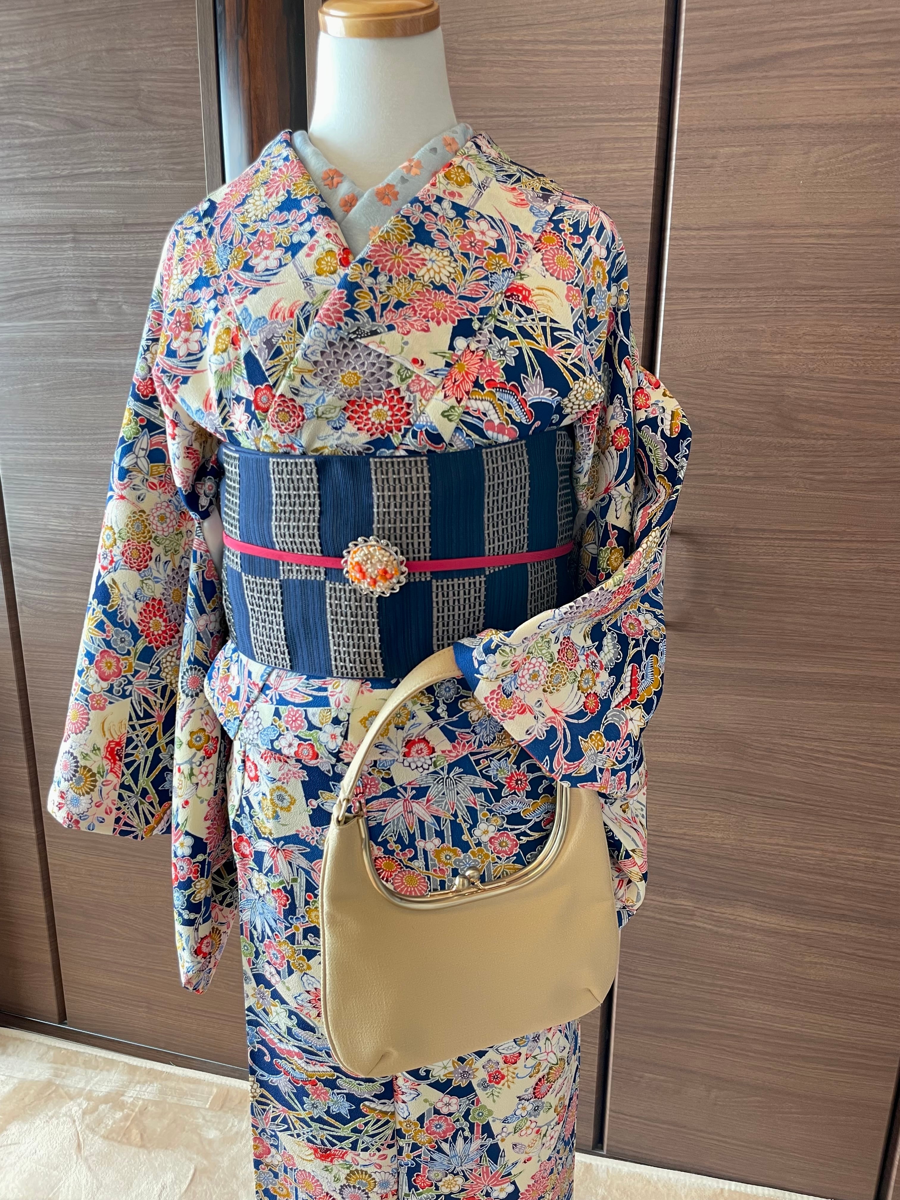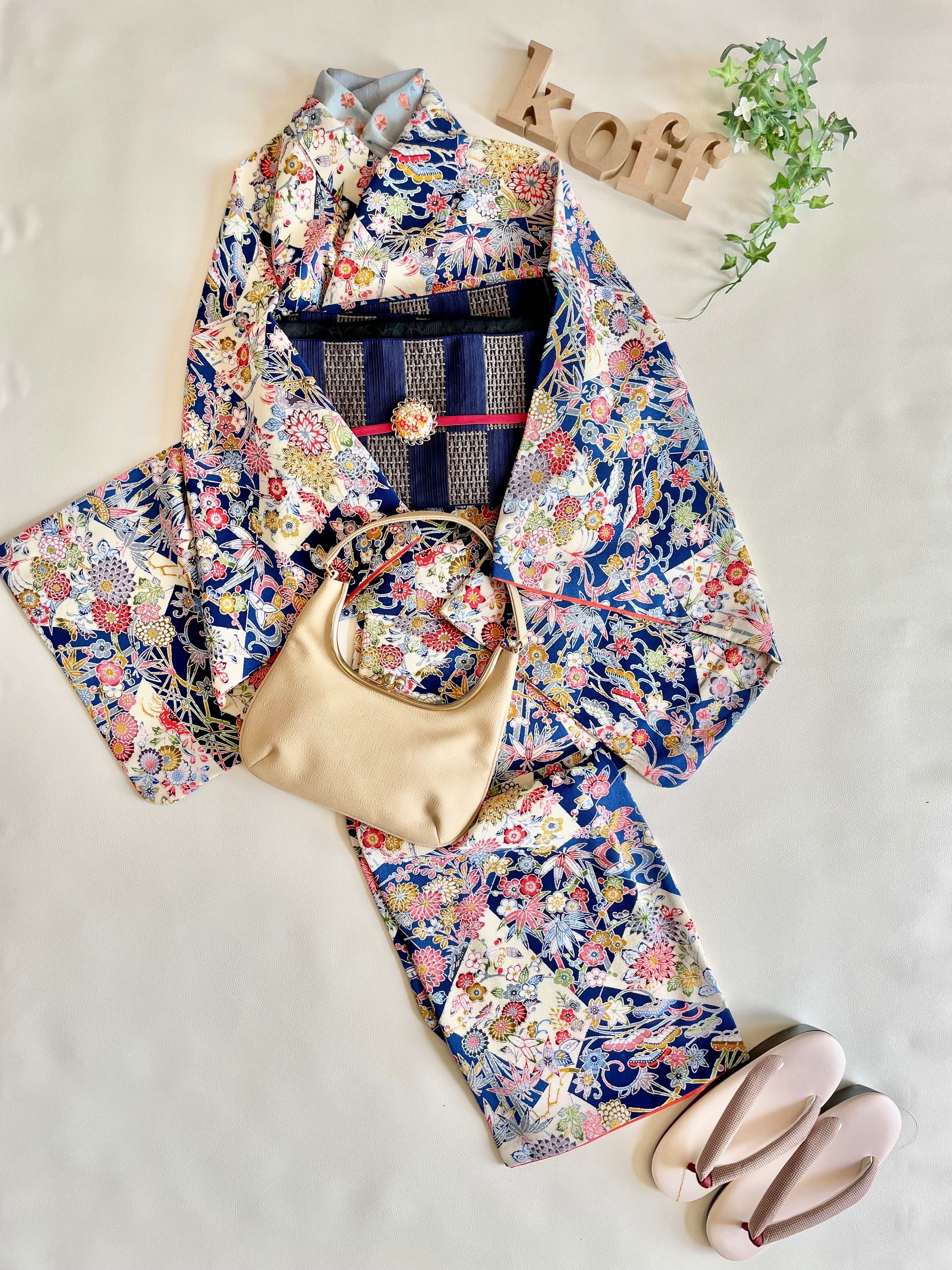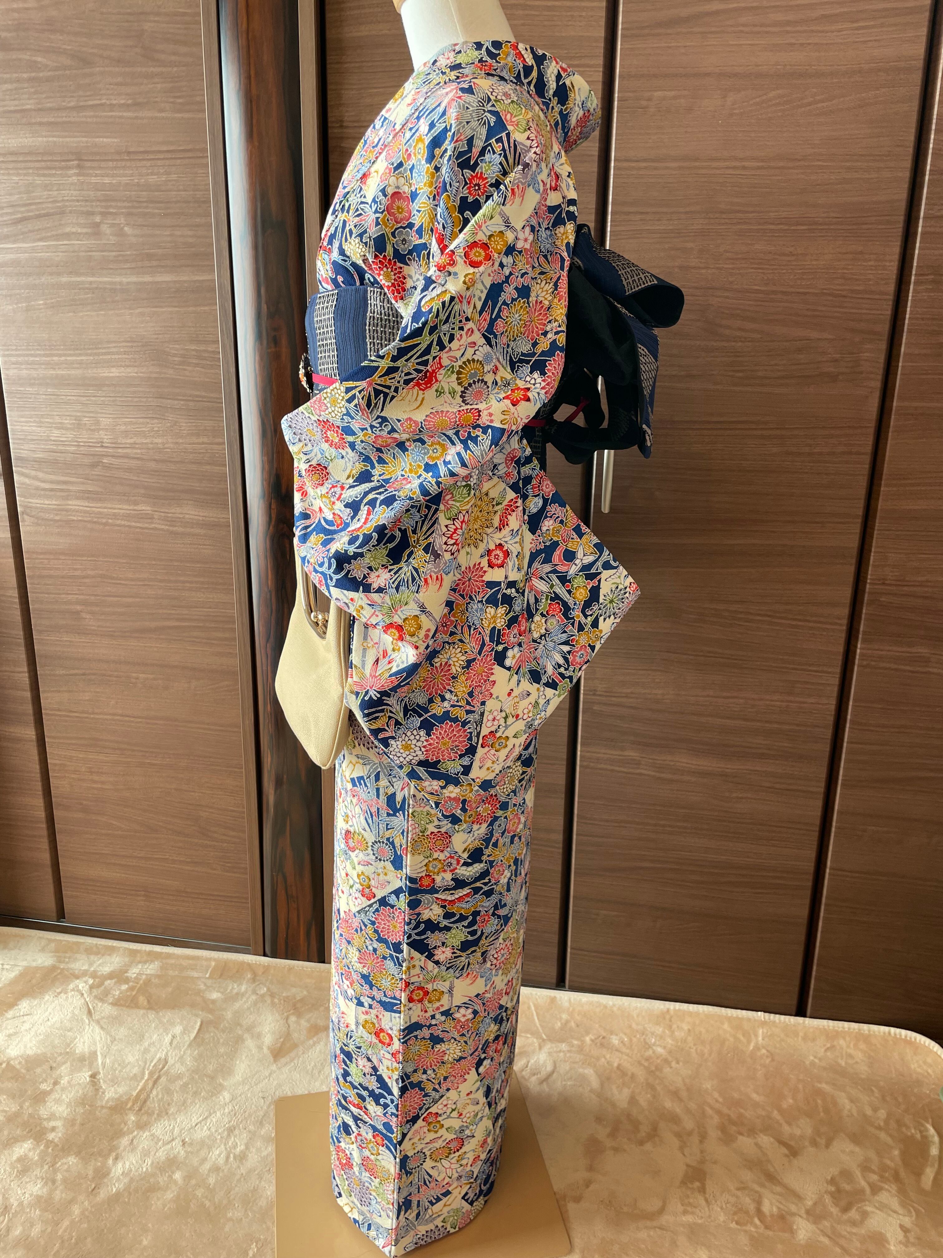 こちらの湖布の紅型セパレート着物は、扱いやすい化繊。とても可愛らしく、紅型のプリントが華やかさを演出し、おしゃれな装いを楽しむことができます。 サイズはL。ゆったりとした着心地が魅力です。セパレート着物なので、着脱も簡単で、お出かけの際に便利です。