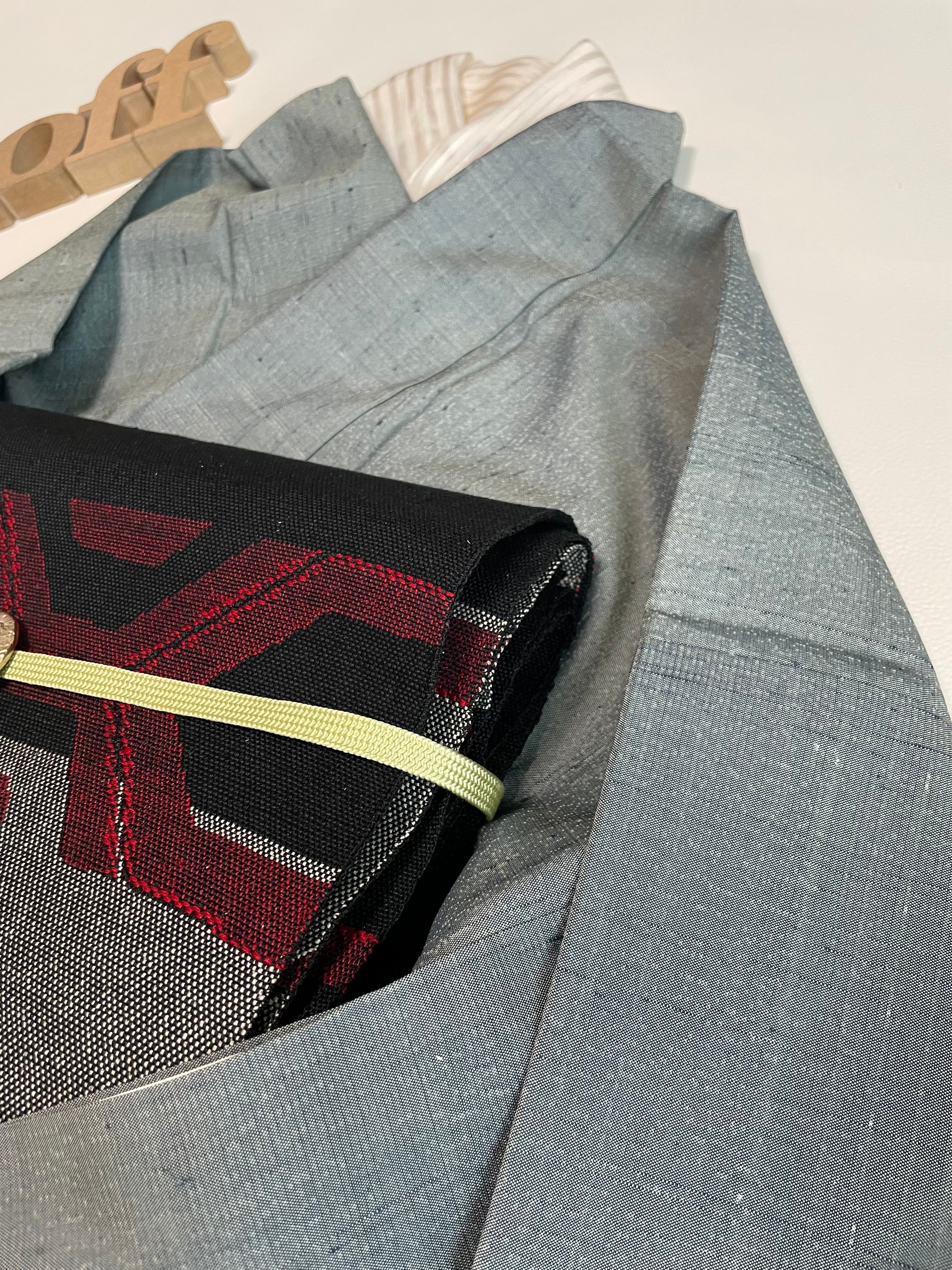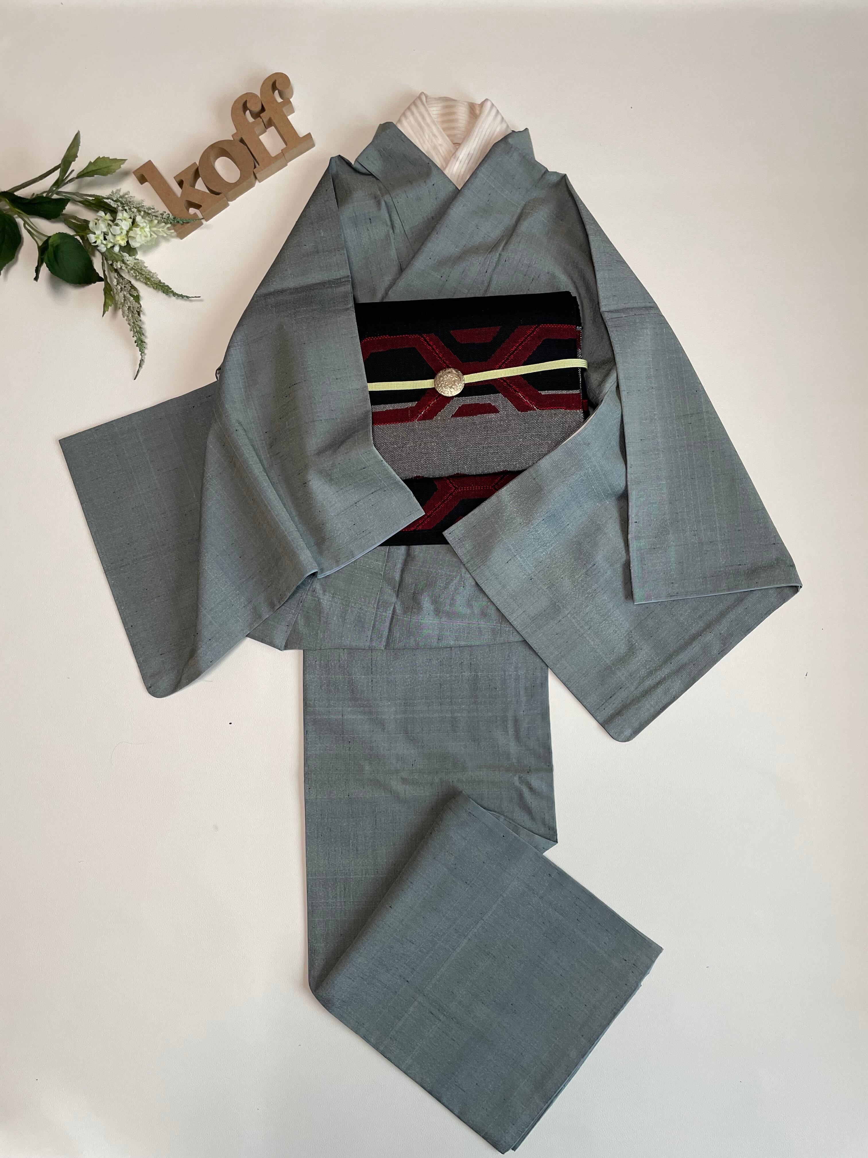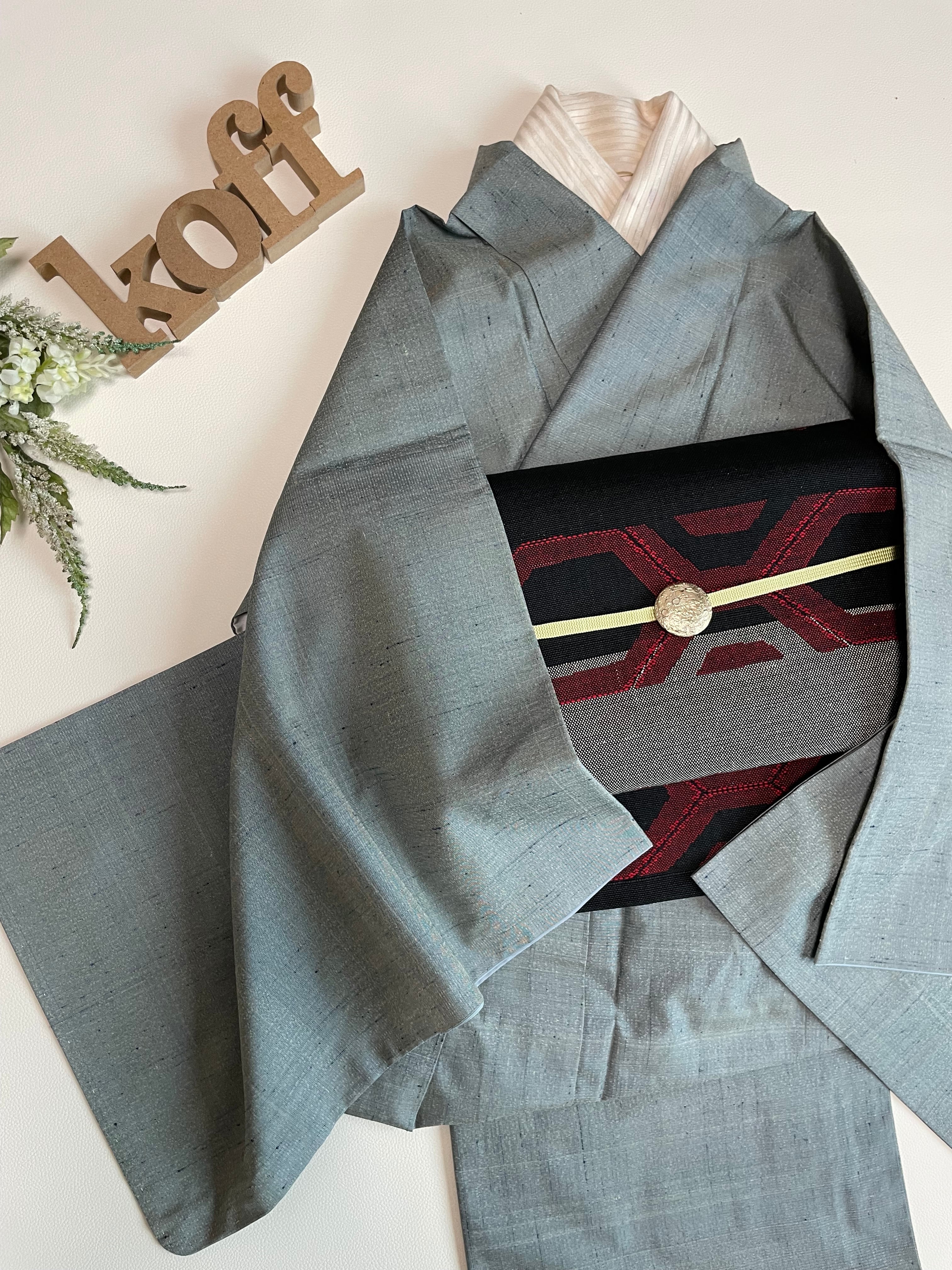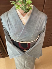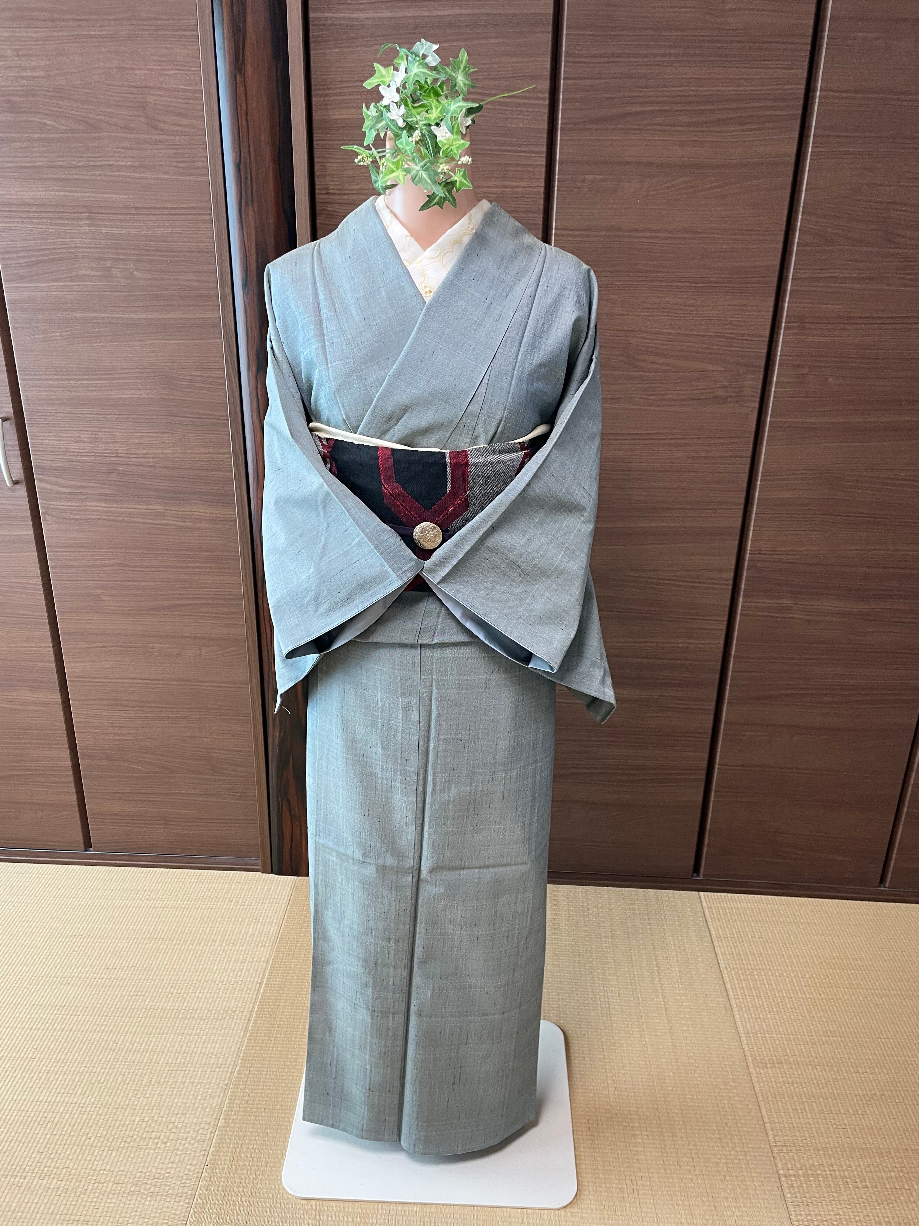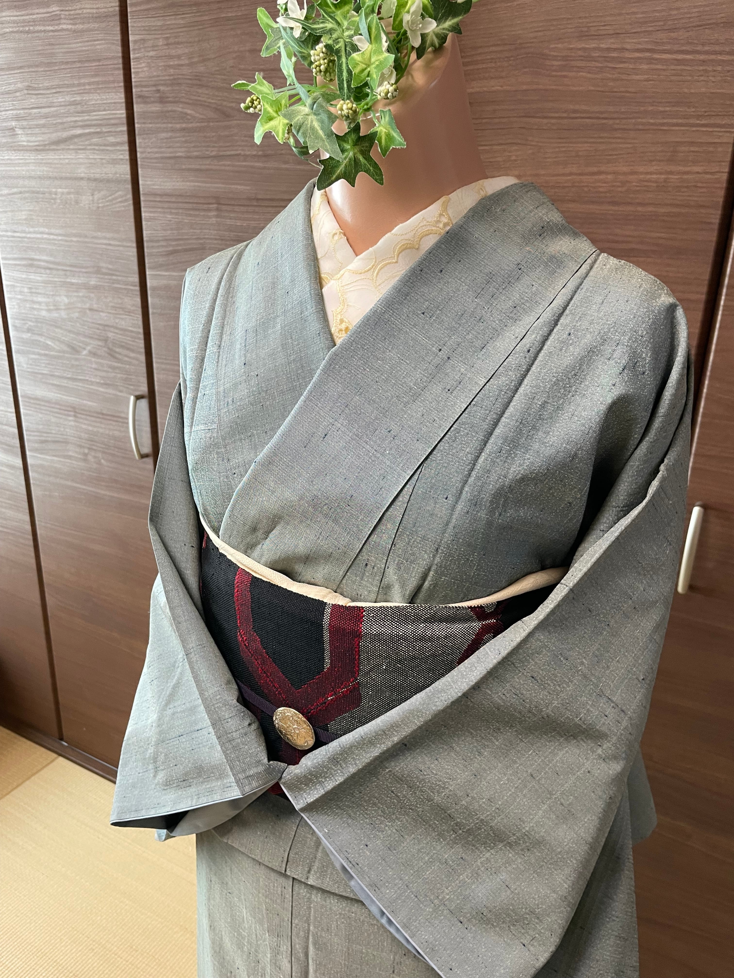明るい灰鼠色で上質な紬です。「京都ますいわや」さんの織タグがついていた高級品。