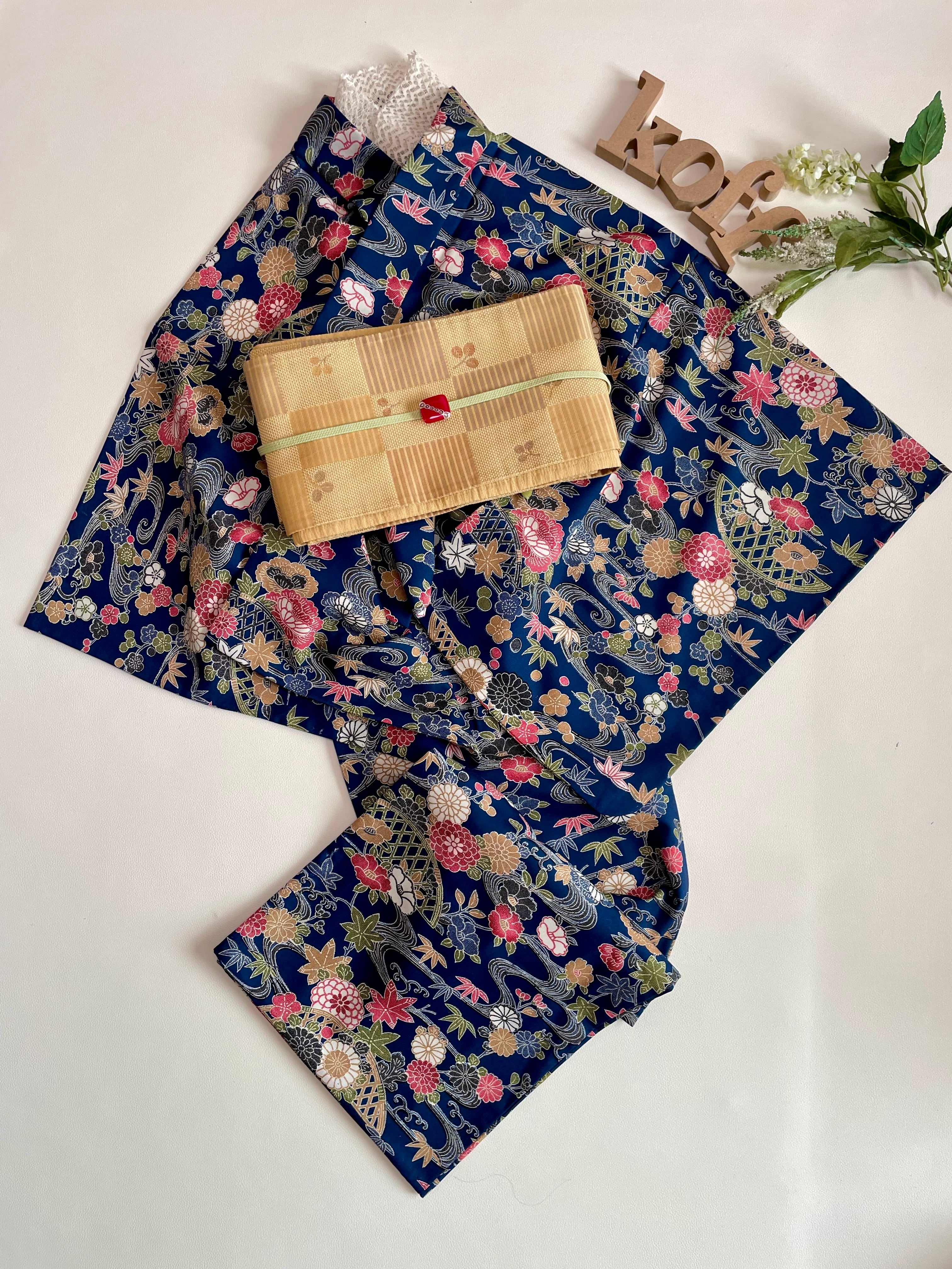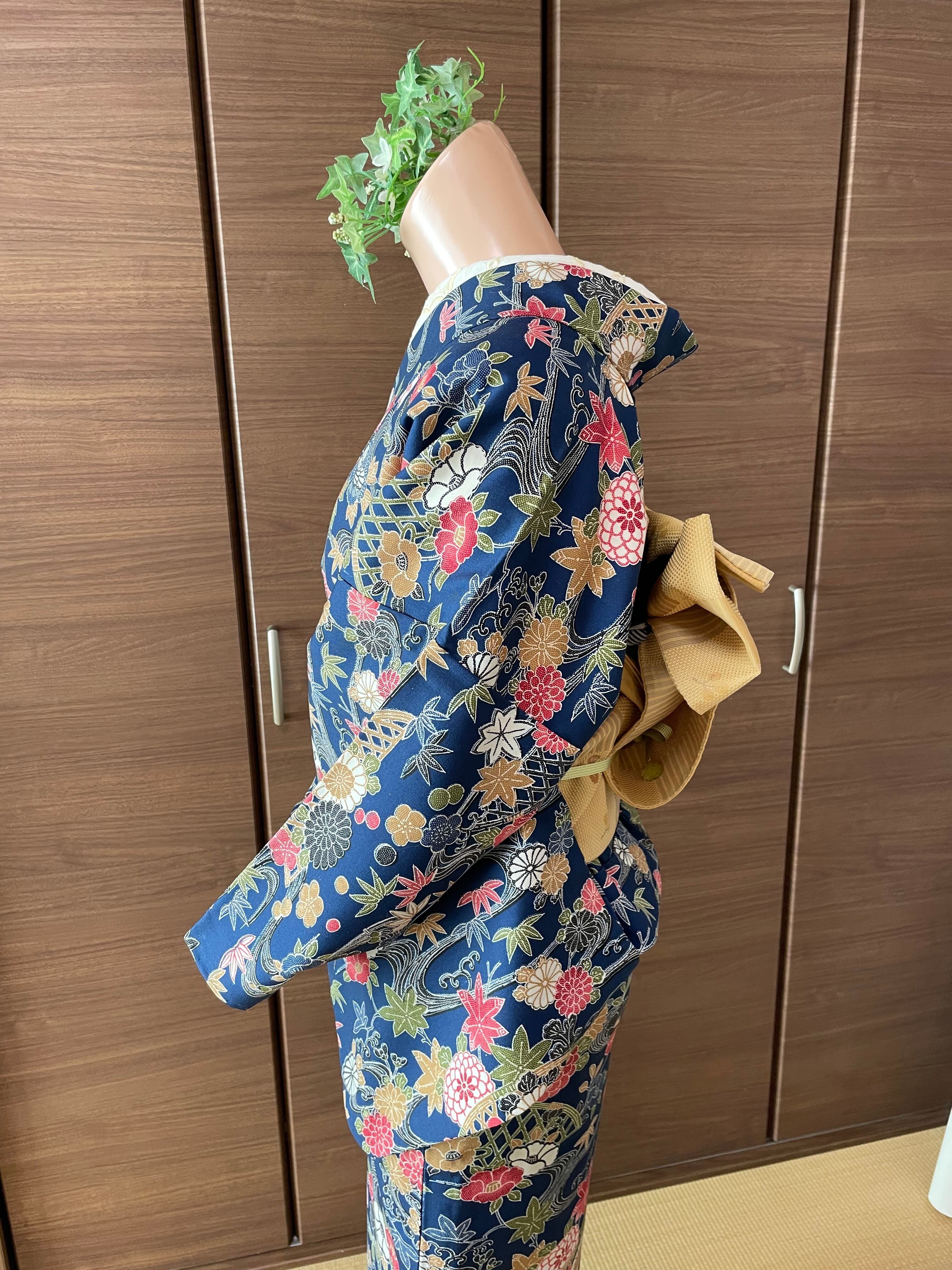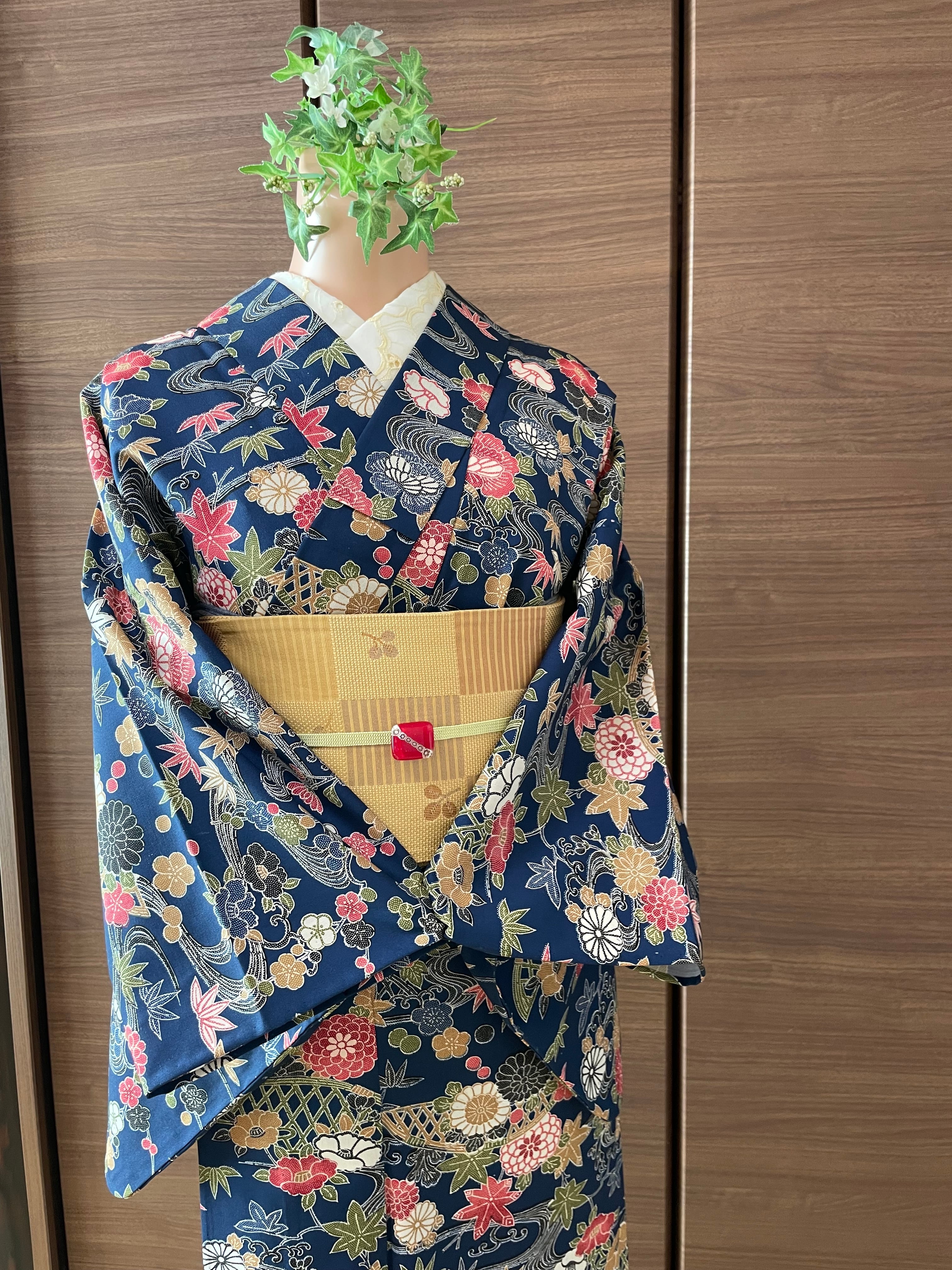 単衣のとてもカジュアルな着物です。昭和などこか懐かしさのあるビギナーさんにも親しめる、家着的な着物。
